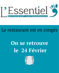 Le restaurant L’Essentiel vous invite à découvrir les menus du mois, soigneusement élaborés par notre Chef Rémi Chaize et son équipe. Laissez-vous séduire par une expérience culinaire unique, alliant créativité et savoir-faire. Bonne découverte et régalez-vous !