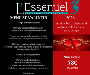 Le restaurant L’Essentiel vous invite à découvrir les menus du mois, soigneusement élaborés par notre Chef Rémi Chaize et son équipe. Laissez-vous séduire par une expérience culinaire unique, alliant créativité et savoir-faire. Bonne découverte et régalez-vous !